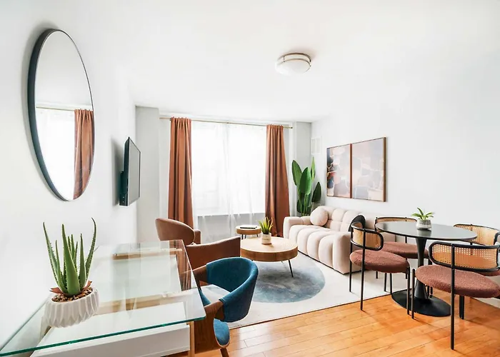 Dieses 1-Zimmer-Apartment ist in ungefähr 1 km Entfernung von der Mall sowie in ungefähr 2 km Entfernung von der Thomaskirche gelegen. Das Cooper-Hewitt Museum ist 10 Minuten Fahrt von der 42 m² großen Ferienwohnung 73-806 New 1Br 1Bth Uws Doorman Gym entfernt.